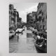 An iconic view of a gondola on a Venice Canal, in black and white.