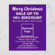 Joyeux Noël! Une des fêtes les plus célèbres de l'année. C'est aussi l'une des meilleures saisons pour annoncer votre entreprise ou pour promouvoir votre marque auprès de clients ou clients. Circulaire personnalisable avec la vente de Noël, votre nom d'entreprise et d'autres informations de votre entreprise, un matériel de marketing que vous pouvez utiliser pour attirer plus de clients. Customisez-le et distribuez-le afin d'attirer plus de clients pour acheter vos produits ou clients pour aimer vos services. Les couleurs design sont des textes rose et blanc sur arrière - plan violet. Pour customiser ce prospectus, indiquez le pourcentage de remise que vous proposerez et les dates de vente. Téléchargez également votre logo d'entreprise, tapez votre nom d'entreprise, votre adresse, votre numéro de téléphone, votre adresse électronique et votre site Web ou votre page de médias sociaux d'affaires. Veuillez vérifier l'apparence sur les côtés avant et arrière après avoir tapé des textes et chargé le logo. Si l'apparence vous plaît, vous pouvez passer votre commande maintenant. Si vous avez besoin de redimensionner et déplacer les textes et le logo pour s'adapter à ce flyer ou à la taille que vous choisirez, veuillez modifier l'outil de conception. Vous pouvez également modifier la couleur arrière - plan, la couleur de police et le style de police dans l'outil de conception. Joyeux Noël! Je vous souhaite plus de ventes ce jour férié.