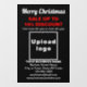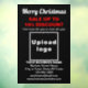 Joyeux Noël ! L'une des fêtes les plus célébrées de l'année. C'est également l'une des meilleures saisons pour faire de la publicité pour votre entreprise ou pour promouvoir votre marque auprès des clients. Autocollant de fenêtre personnalisable avec Soldes de Noël, le nom de votre entreprise et d'autres informations. Autocollant de fenêtre que vous pouvez utiliser comme matériel marketing pour attirer plus de clients. Personnalisez-le et affichez-le pour convaincre davantage de clients d'acheter vos produits ou de faire appel à vos services. Autocollant de fenêtre pour décembre ou Noël en juillet. Les couleurs du design sont des textes rouges et blancs sur fond noir. Le contenu comprend un message de Joyeux Noël, des textes de soldes avec pourcentage de réduction que vous offrirez, dates de solde, nom de votre entreprise, logo, adresse, numéro de téléphone, e-mail et site web ou page de médias sociaux de votre entreprise. Veuillez vérifier l'apparence après avoir téléchargé le logo et saisi les textes. Si l'apparence vous convient, vous pouvez passer votre commande maintenant. Si vous devez redimensionner et déplacer le logo et les textes pour les adapter à cet autocollant de fenêtre ou à la taille et à la forme que vous choisirez, veuillez modifier dans l'outil de conception. Vous pouvez également modifier la couleur de fond, la couleur de