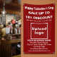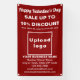 Bonne Saint Valentin ! Un beau jour férié pour célébrer ce mois de février et faire de la publicité pour votre entreprise ou pour promouvoir votre marque. Bannière personnalisable avec Valentine Sale, votre nom d'entreprise et d'autres informations. Bannière que vous pouvez utiliser comme matériel marketing pour attirer plus de clients. Customisez-le et affichez-le pour convaincre plus de clients d'acheter vos produits ou clients d'aimer vos services. Les couleurs design sont des textes blancs sur arrière - plan rouge. Les contenus sont des salutations Happy Valentine’s Day, des textes de vente avec pourcentage de réduction que vous offrirez, des dates de vente, votre nom d'entreprise, logo, adresse, numéro de téléphone, e-mail et site Web ou votre page de médias sociaux d'affaires. Veuillez vérifier l'apparence après avoir téléchargé le logo et tapé des textes. Si l'apparence vous plaît, vous pouvez passer votre commande maintenant. Si vous avez besoin de redimensionner et déplacer le logo et les textes pour tenir sur cette bannière ou sur la taille que vous choisirez, s'il vous plaît changer dans l'outil de conception. Vous pouvez également modifier la couleur arrière - plan, la couleur de police et le style de police dans l'outil de conception. Bonne Saint Valentin ! Je vous souhaite plus de ventes ce jour férié.