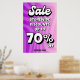 Signe de vente en rose et violet, conçu pour les magasins de détail, boutiques et kiosques. Vous pouvez modifier les textes en utilisant la fonction "Personnaliser".
