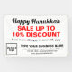 Heureux Hanoukka ! Je vous souhaite la joie, la paix et la bénédiction de cette fête des lumières. Fêtes pour célébrer ce Décembre et pour annoncer aussi votre entreprise. Bannière rectangle personnalisable avec Hanoukka Sale, votre nom d'entreprise et d'autres informations. Bannière que vous pouvez utiliser comme matériel marketing pour attirer plus de clients. Customisez-le et affichez-le pour convaincre plus de clients d'acheter vos produits ou clients d'aimer vos services. Les couleurs design sont des textes noirs et rouges sur arrière - plan blanc. Les contenus sont des salutations Happy Hanoukka, des textes de vente avec pourcentage de réduction que vous offrirez, des dates de vente, votre nom d'entreprise, logo, adresse, numéro de téléphone, e-mail et site Web ou votre page de médias sociaux d'affaires. Veuillez vérifier l'apparence après avoir téléchargé le logo et tapé des textes. Si l'apparence vous plaît, vous pouvez passer votre commande maintenant. Si vous avez besoin de redimensionner et déplacer le logo et les textes pour tenir sur cette bannière ou sur la taille que vous choisirez, s'il vous plaît changer dans l'outil de conception. Vous pouvez également modifier la couleur arrière - plan, la couleur de police et le style de police dans l'outil de conception. Heureux Hanoukka ! Je vous souhaite plus de ventes ce jour férié.