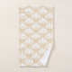 Serviette de bain à motifs floraux d'art déco blanc et or. Le design est composé d'un motif à fleurs de ventilateur blanc et d'or extensible. 1920s Gatsby motif style.