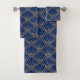 Serviette de bain à motifs floraux bleu et or art déco. Le design est composé d'un motif à fleurs bleu et or extensible. 1920s Gatsby motif style.