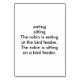 Ces cartes de poche personnalisées sont accompagnées d'une photo d'un braqueur assis et mangeant à la mangeoire d'oiseaux. Le texte à l'arrière dit, "manger assis Le robin mange à la mangeoire d'oiseaux. Le braqueur est assis sur une mangeoire d'oiseaux." Le texte peut être customisé. Merci pour l'achat CustomFlashCards sur Zazzle pour la lecture de cartes mémoires pour adultes. J'étais un tuteur en alphabétisation pour adultes, et ces types de cartes flash auraient été très utiles.