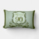 Quatre-vingt-dixième coussin vintage et élégant d'anniversaire en vert avec les frontières personnalisables de couleur. Grand nombre avec l'ombre de baisse (non personnalisable). Pour d'autres nombres veuillez me contactent. Vous pouvez seulement changer le nom et le texte (dans le dos). Disponible dans le pourpre.