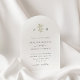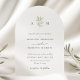 Célébrez votre histoire d'amour avec ce faire-part de mariage intemporel et sophistiqué, avec un délicat monogramme de branche d'olivier et une forme d'arc moderne propre. Parfait pour les couples qui apprécient l'élégance naturelle et le design minimal. Cette invitation met en évidence vos initiales dans une police serif gracieuse au-dessus d'un motif vert doux, avec du texte noir classique sur un arrière - plan blanc immaculé. Idéal pour les mariages de jardin, les fêtes rustiques chic ou les cérémonies modernes minimalistes.
