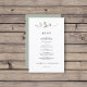 Menu minimaliste Mariage Invitations - avec son aquarelle élégante et son texte noir simple. Le revers de cette carte élégante est vert pastel poussiéreux.