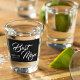 Un grand cadeau de barware pour le meilleur homme dans votre fête de mariage! Tirer du verre avec les noms de mariée et de mariée et la date du mariage avec "Best Man" imprimé en écriture blanche et élégante sur un arrière - plan noir. Personnalisez votre verre de tir en éditant et en remplaçant les noms des mariés et des mariés et la date du mariage par les vôtres.