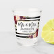 Script de brosse moderne, aquarelle Burgundy Marsala Floral avec bandes noires et blanches Mr et Mrs Mariage Shot Glass