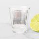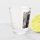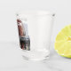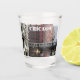 Shot glass that features a travel photo image of the iconic, elevated Loop train in the windy city of Chicago, Illinois. A great barware and travel souvenir gift idea!