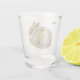 Un dessin au crayon de couleur d'un adorable chipmunk bébé orne ce verre de tir personnalisable!