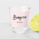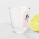 Verre à shot de demoiselle d'honneur rose avec une calligraphie tendance en noir sur un fond pastel rose simple. Plus de produits avec ce design sont dans la collection ci-dessous.