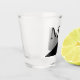 Design moderne en diagonale noire et monogramme de verre photographié.