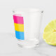 Shot Glass : Symbole communautaire du drapeau et de la fierté transexuels pour la communauté pansexuelle afin d'accroître sa visibilité et sa reconnaissance, et de se distinguer de la bisexualité. Les couleurs cyan, magenta et jaune sont celles de ceux qui s'identifient comme des hommes, des femmes et des personnes non-binaires.