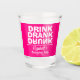 Ces verres à shot personnalisés pour enterrement de vie de jeune fille avec les mots Boire Bu et Boit à l'envers sont amusants à utiliser pendant la célébration et pour que les invités les emportent comme cadeaux de fête. Nous affichons un fond rose vif, mais vous pouvez le changer en n'importe quelle couleur.