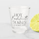 Lancez la fête lors de votre séjour estival de demoiselle d'honneur avec ces verres à shot présentant "été de demoiselle d'honneur chaud" en typographie tendance avec une ligne de texte personnalisé en dessous; illustré avec la destination et l'année.