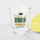Customize your own green and gold Class of 2026 graduate shot glass for a high school or college graduation party. Cool varsity letters for the year on a great custom commemorative keepsake for seniors.
