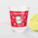 Tout prêt pour fêter la nouvelle année, ce joyeux manchot est présenté sur ce verre de tir. Le pingouin heureux porte un foulard rayé et des oreilles roses. L'arrière - plan rouge a des flocons blancs et peut être customisé. Vous pouvez également customiser le texte.