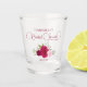 Ces jolis verres à shot sont une façon amusante et attentionnée de remercier vos invités d'être venus à votre douche de mariée. Ils présentent un beau design bohème chic avec une élégante écriture script et un bouquet de roses peintes à la main dans des nuances de rose chaud, magenta et blush, ainsi que des feuilles d'eucalyptus et de la verdure de jardin. La légende indique : Douche de mariée, avec un espace pour son nom et la date.