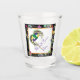 1.5 oz. verre filmé avec une image de masques colorés à plumes et à paillettes, de casquettes jester, d'un casquette plumé, ballons, perles, pièces, étoiles et rubans d'or sur le noir autour d'un carré blanc avec une bordure en or, un masque mardi Gras amusant et "Mardi Gras Fun" en écriture violette française. Voir toute la collection Mardi Gras Shot Glass dans le FOOD/BEV | Section Plats.
