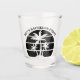 Des palmiers cool sur un verre à shot personnalisé de fête de célibataire ou de garçons d'honneur. Personnalisez ces verres à shot cool pour votre mariage de destination. Ils sont parfaits pour que tout le cortège de mariage les apporte à un dîner de répétition de séjour sur une île ou pour un témoin de la mariée ou un meilleur ami.