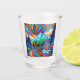 L'art de l'Ai représente un parcours à disques colorés dans les montagnes et les pins en bleu, orange et vert.
