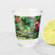 Verre A Shot Parrot écarlate macaw dans la jungle avec des fleu