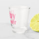 Cette vitre amusante, de garde-saké, contient l'expression "Baby shower" imprimée dans un style rétro, fausse police de parties scintillant rose. Le mot "shots" est imprimé ci-dessous dans une police noire.