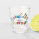 Verre à shot pour enterrement de vie de jeune fille rose rouge avec fleurs aquarelles roses, rouges, bleues et feuilles vertes.