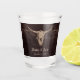 Rustique crâne de vache taureau de l'ouest pays cowboy mariage dîner réception soirée de faveur verre tourné. Customisé à la texture brune style ferme. Ancien antiquité vintage sauvage de l'ouest. Cool, tendance, design animal de ferme moderne. Copyright de l'image Marg Seregelyi Photography.