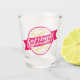 Verre de style rétro "Softball Godmère", avec un softball dans une bordure de style bannière rose et or.