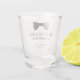 Verre à shot personnalisable avec illustration de nœud papillon noir et typographie classique avec le nom des mariés et la date. Ce verre à shot sera un souvenir de mariage parfait pour votre cortège de mariage.