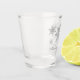 Ce verre à shot personnalisable présente des flocons de neige modernes pailletés d'argent et constitue un excellent cadeau de mariage ou une faveur. Ajoutez les noms des mariés et la date du mariage pour personnaliser.