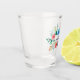 Verre à shot pour enterrement de vie de jeune fille avec fleurs aquarelles roses, rouges, bleues et feuilles vertes.