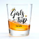 Verre à shot de voyage entre filles avec couronne dorée et cœurs roses. Personnalisez-le en ajoutant votre nom et l'année de vacances.