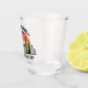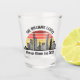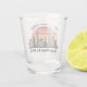 Verre à shot personnalisé pour des vacances à Chicago dans l'Illinois avec une silhouette de l'horizon de la ville devant un coucher de soleil cool. Objet de souvenir de voyage sympa pour un voyage en famille.