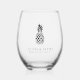 Ces élégantes verres à vin minimalistes sans tige font de grands cadeaux de fête de mariage ou des faveurs de mariage. Nettoyez le design minimal avec vos noms, date mariage et emplacement dans les lettres noires classiques. Un ananas stylisé fait de ces lunettes des faveurs pour les mariages de destination tropicale.