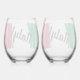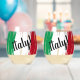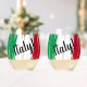 Un élégant ensemble de verre de vin sans tige présente une version artistique de brosse du drapeau de l'Italie avec une superposition de texte personnalisable