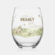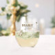 Célébrez avec style avec le "Bearly Wait Cute Bear Watercolor Baby shower Verre à vin sans tache". Le design mignon comprend un ours de chaque côté, debout sur une herbe verte et regardant un papillon volant au-dessus de son nez. Sur ses côtés, des arbres et des ballons colorés flottent dans l'air. Deux chouettes chouettes regardent la scène d'en haut. Le texte "nous pouvons attendre longtemps" est peint devant la scène de la forêt aquarelle et vous pouvez customiser les mots, la police et les couleurs de votre choix. Pratique et charmant, ce verre de vin sans tige est parfait pour ajouter une touche de fantaisie à votre baby shower. Faites vos courses maintenant et laissez la fête commencer ! ©Susanne Sachers - Sunny Mind Design 🌞