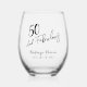 Black Fifty and Fabulous Script Birthday Party Stemless Wine Glass.