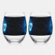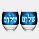 Verre À Vin Sans Pied Bleu brillant Shalom sur étoile gravée de David