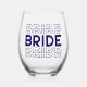 This wine glass is shown with a wedding bride print.