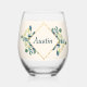 Ce verre de vin sans tige correspond à l'ensemble d'invitation du même design appelé, White Calla Lilies et Eucalyptus. Obtenez-en un pour la mariée et le marié (commandés séparément) ou comme une faveur pour votre mariage