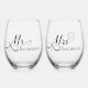 Célébrez votre journée spéciale avec ces charmants verres à vin Mr et Mrs sans tige! Avec de magnifiques calligraphies de scénario et des noms personnalisables, ces verres à vin impressionneront à la réception et seront aussi un beau gardien pour les années à venir. Faites aussi un beau cadeau personnalisé de mariage ou d'anniversaire pour les couples ou les jeunes mariés!