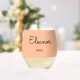 Avec une couleur arrière - plan pêche fraîche, ce verre à vin sans tige présente un design élégant et minimaliste. Personnalisez avec le nom de la mariée, qui sera affiché dans la typographie stylisée.