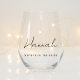 Chic keepsaké vin verre sans tige pour la mère de la mariée ou mariée à célébrer avec à votre douche nuptiale, dîner de répétition, réception de mariage et autres événements mariages. Personnalisez avec son nom dans un script de calligraphie moderne minimal et "Mère de la Mariée" ou "Mère de la Salle" dans une élégante typographie serif.