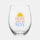 Sip in style and celebrate your little sunshine with our "Here Comes The Son" Stemless Wine Glass! Featuring a charming sunrise design and bright, cheerful hues, this glass makes the perfect keepsake or party favor for a baby boy shower. Made from high-quality glass with a smooth, stemless shape, it’s ideal for toasting to sweet beginnings and unforgettable memories. A beautiful blend of function and sentiment—perfect for guests or as a gift for the mom-to-be!