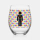Ce magnifique verre de vin sans tige présente la silhouette d'un homme avec les mots "Fière d'être gay" en lettres arc-en-ciel sur son corps. Un design inspiré par ma conviction passionnée que chacun est égal, quelle que soit sa sexualité. L'arrière - plan est composé de petits hommes, chacun a est une couleur différente de l'arc-en-ciel.