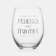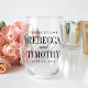 Des verres à vin classiques et élégants, sans tige, font de vos invités un cadeau de mariage unique et étonnant ! Le design chic se décline en haut avec des "encouragements à l'amour", avec vos noms dans de beaux blocs traditionnels et des lettres de script reliées par un script décoratif "et". Personnalisez avec votre date de mariage en dessous.